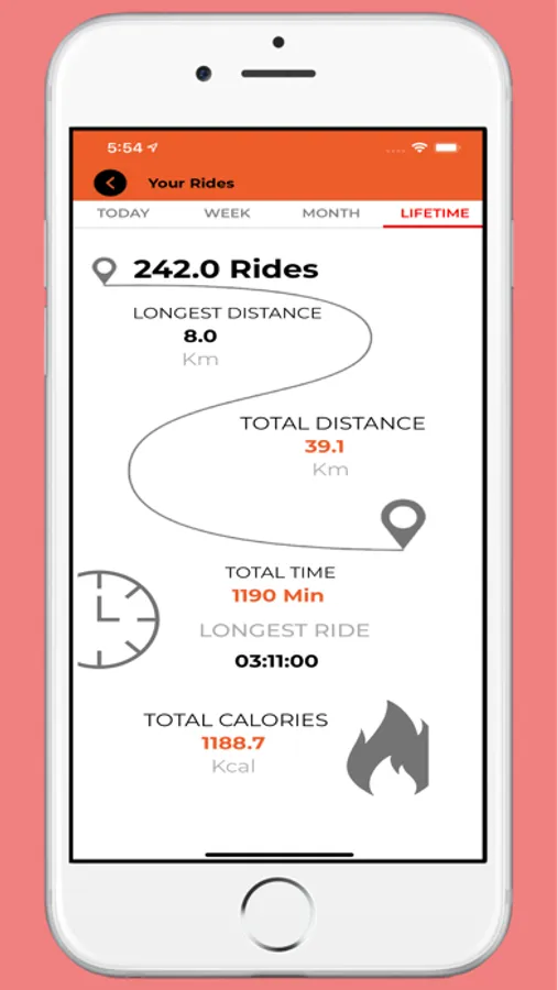 2. Ride Insights- Track your rides insights like speed, distance, duration, Calories burnt on a single dashboard