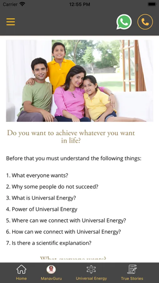 This app is your guide towards understanding ManavGuru’s unique knowledge based on ancient Indian values and culture. Your success is within your reach once you understand the importance of staying connected with the Universal Energy around you.