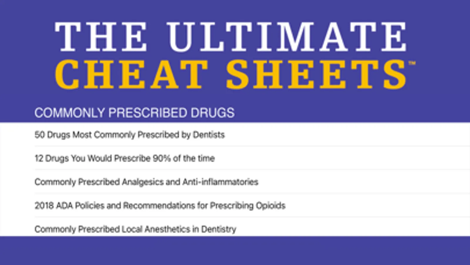 The Ultimate Cheat Sheets is a compendium of practical algorithms for the dentist: it is designed as an aid and not as a substitute for chair-side clinical judgment.