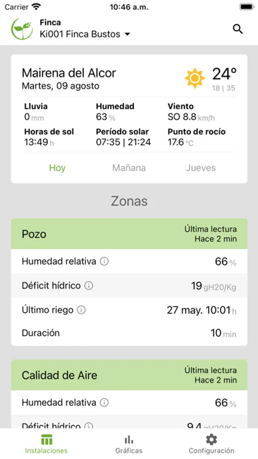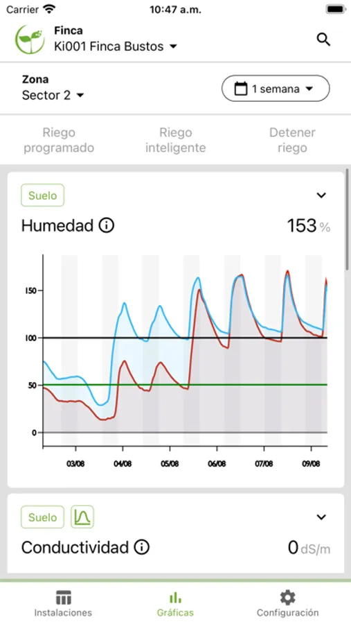 Además se conecta fácilmente a cualquier sistema de riego que tengas ya instalado en tu finca. Todo ello por un económico alquiler mensual.
