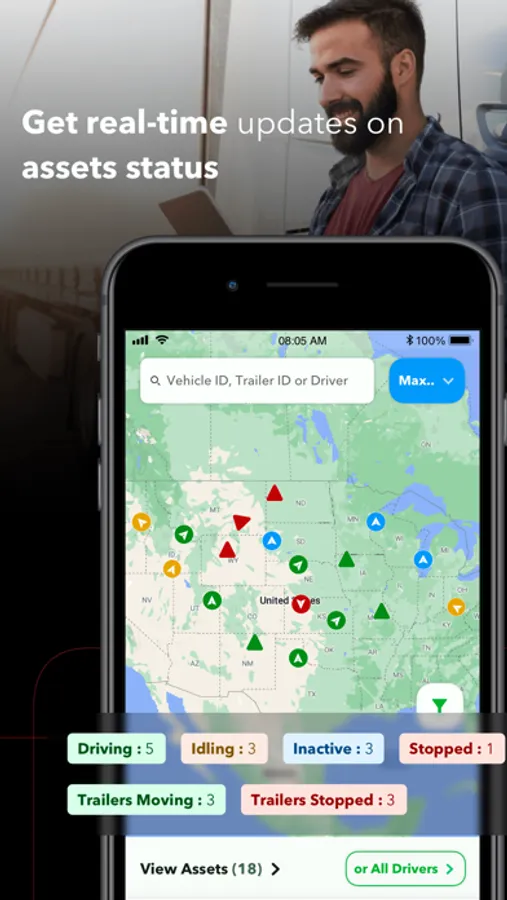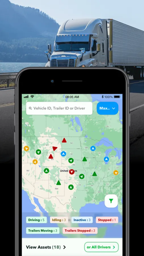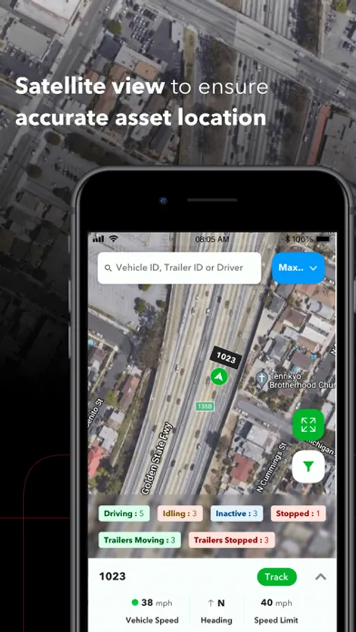 - View the status of all assets on one screen i.e. driving, idling, inactive, stopped.