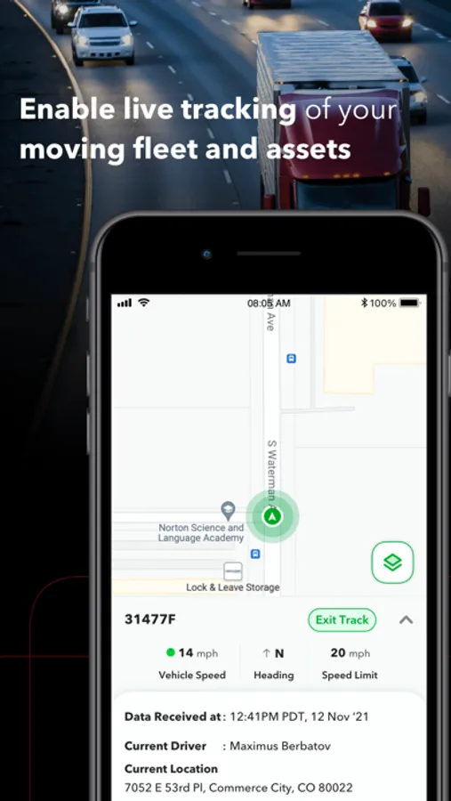 - View information like vehicle speed, current driver, driving duration, last stop location, etc.