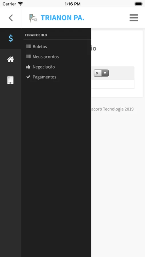 No APP do Condomínio Trianon Park o condômino poderá imprimir a segunda via de seu boleto, verificar suas pendências, ler e imprimir relatórios disponibilizados pelo sindico e/ou administradora, negociar e parcelar suas taxas com desconto exclusivo pelo APP .