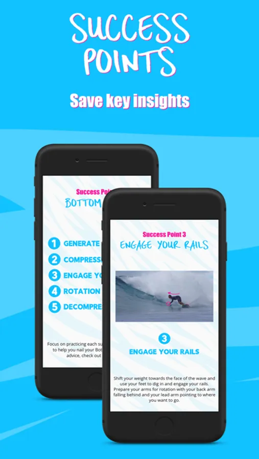 With the Surf App Success Points feature you can now receive key insights and useful reminders on how to succeed in your surf training.