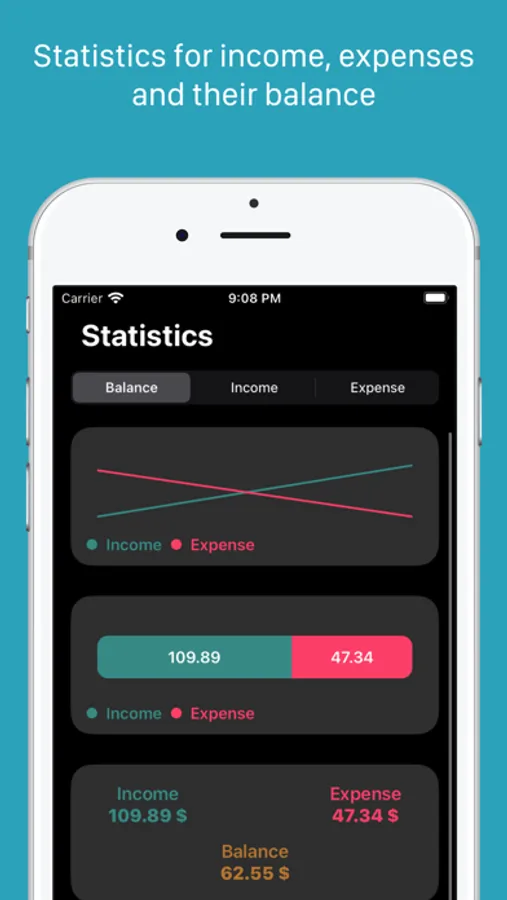 - see your statistic for your income, expense