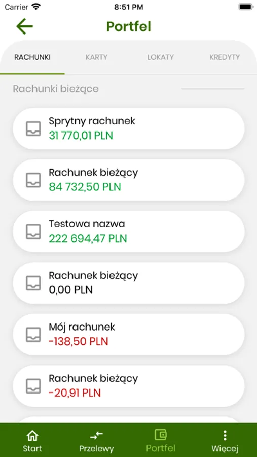 - prezentowanie rachunków, kart, lokat i kredytów klienta,