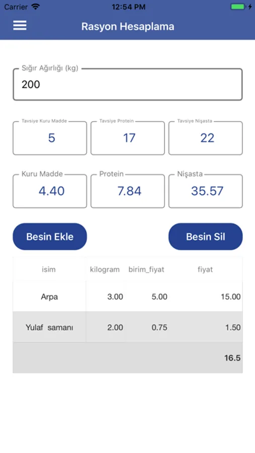 • Kolayca rasyon hesabı yapmanızı sağlar.