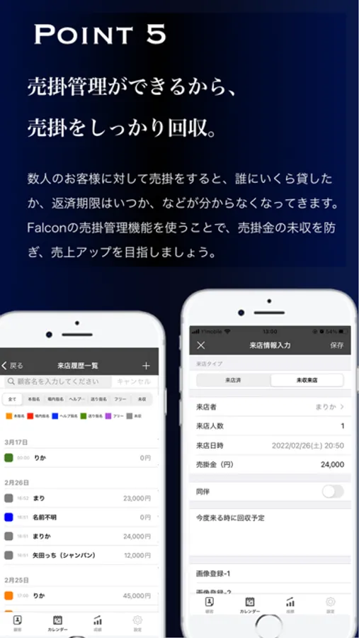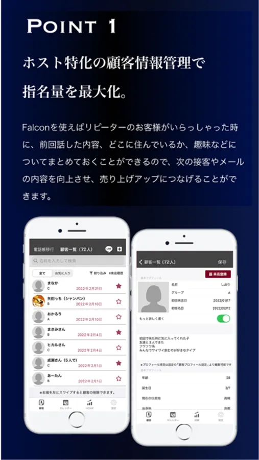 Falconは顧客管理を支援するホスト専用アプリ。