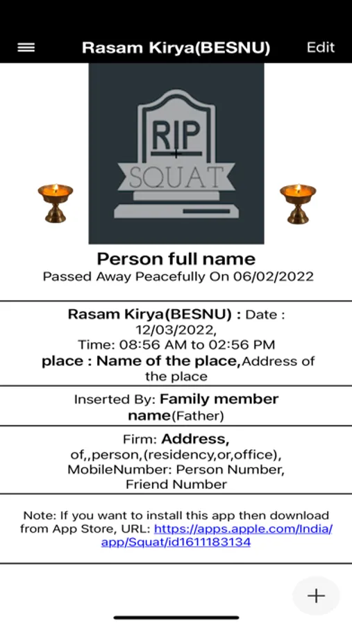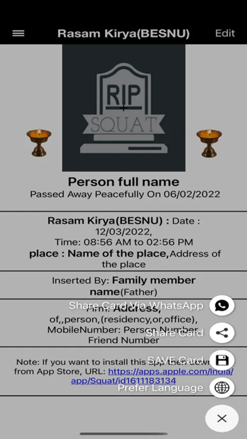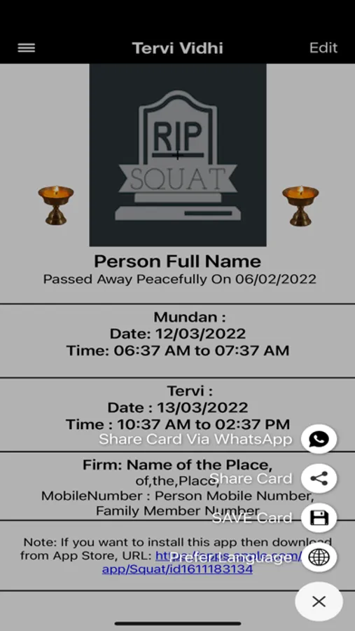 1.You can create the card for invite the people in Squat(BESNU) and share on whatsApp, Facebook or Gmail with Location.