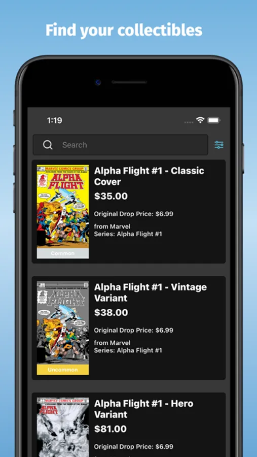 Veve Price Tracker helps you to organize your collectibles, comics and future drops.