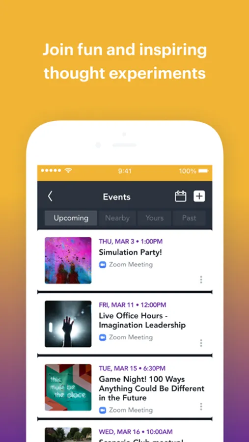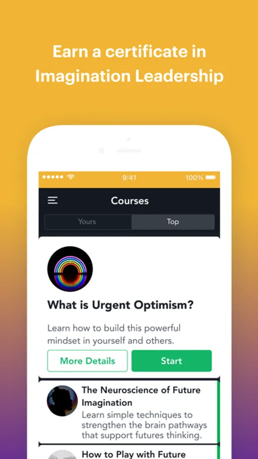PLUS all the social networking features you need to make deep, lasting connections with urgent optimists from around the world -- including group chat study groups to support your imagination training, a forum to share and get feedback on your own future scenarios, direct messaging, and customizable profiles to tell the world what futures you want to help make.