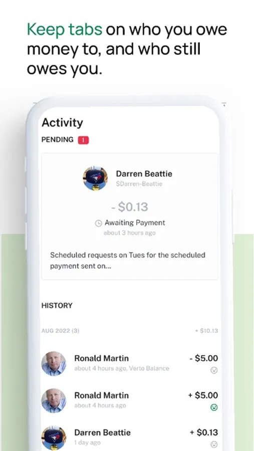 Friends/ roommates Verto each other for lunch, split utilities, collect travel funds etc, with fun notes and emojis!