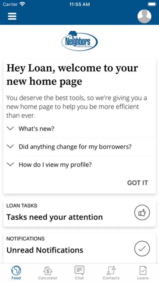 •Easily access contact information for your Neighbors Loan Officer and share information with your family and friends.