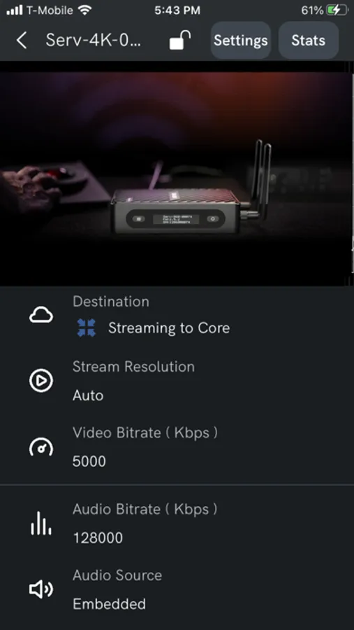 Keep track of your live stream from your smart device with the Serv app. Easily monitor your video and audio feed, while reviewing stream stats like bitrate, bonding status, and network health. And take it one step further by enabling hotspot bonding with multiple cellular devices for fast, reliable internet connectivity wherever you go.