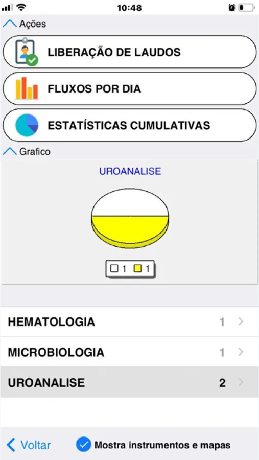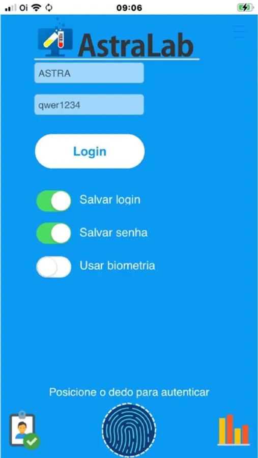 Aplicativo para o bioquímico e os técnicos do Laboratório que podem acompanhar a rotina do Laboratorio em tempo real, liberar laudos e/ou ter acesso aos dados financeiros.