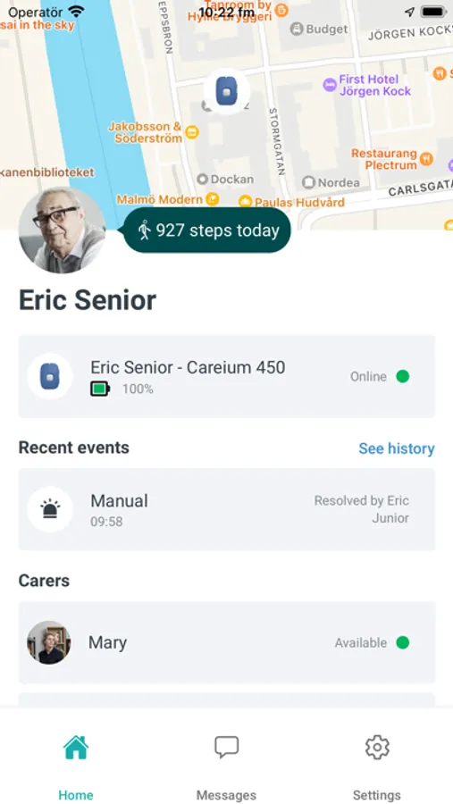 As an approved “carer”, you can respond to alarms, view latest known position*, see the service user’s step count and have access to the device’s status such as battery level and signal strength. You will only be able to use this app if you have been invited and received an account by a service provider.