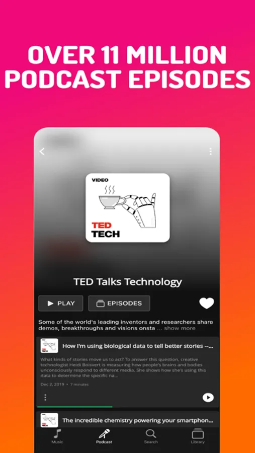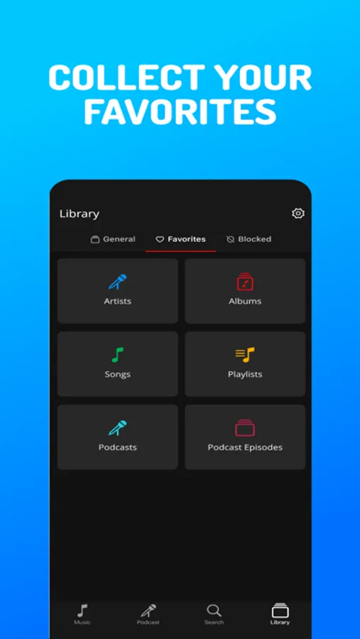 • Add songs, artists, albums, podcasts and podcast episodes to your Library