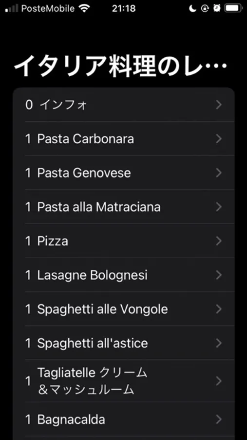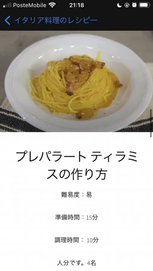 ユーザー様へ、ご利用ありがとうございました。 イタリア料理の作り方を案内してくれる無料アプリです。イタリア語で話しているのですが、日本語の説明文があるので、絵から感覚的に理解できます。私たちは最善を尽くしますが、ご理解をお願いします。アプリには19のレシピがあります。 左側に1=ファーストコース、2=セカンドコース、3=デザートと数字が書かれているのです。イタリアでは、第1コースは炭水化物を多く含む料理、第2コースは肉や魚の料理、第3コースはデザートと呼びます。