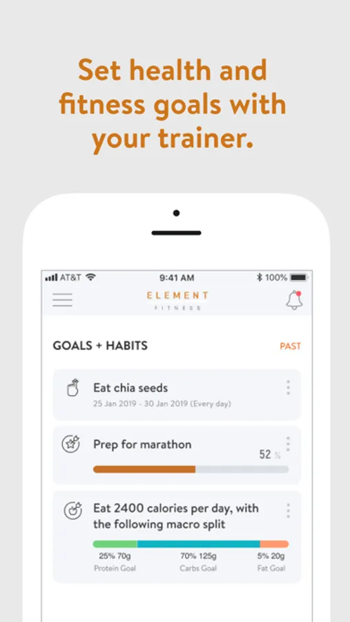 With the Element Fitness App, you can start tracking your workouts and meals, measuring results, and achieving your fitness goals, all with the help of your personal trainer.