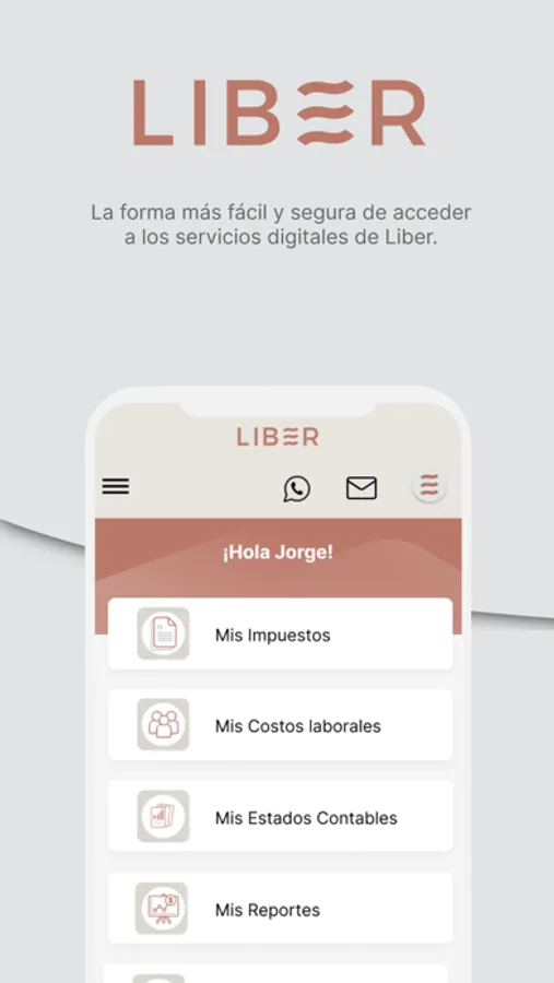 LiberApp es la herramienta que Liber® ofrece a sus clientes para que puedan acceder, desde su teléfono móvil, a toda la información sobre sus Impuestos, Costos Laborales, Estados Contables y Reportes de Gestión. Además, podrán visualizar sus vencimientos y recibir notificaciones del equipo asesor.