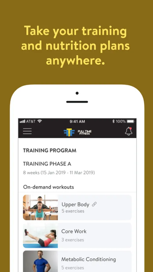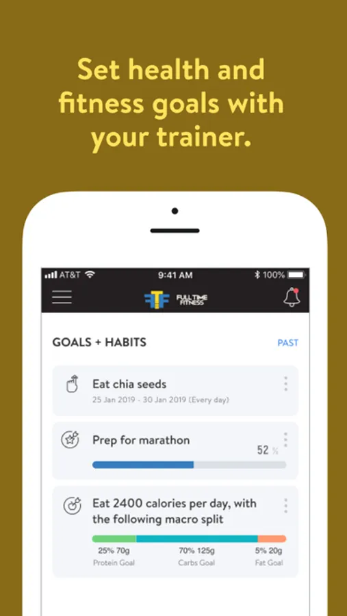 With the Full Time Fitness App, you can start tracking your workouts and meals, measuring results, and achieving your fitness goals, all with the help of your professional trainer.
