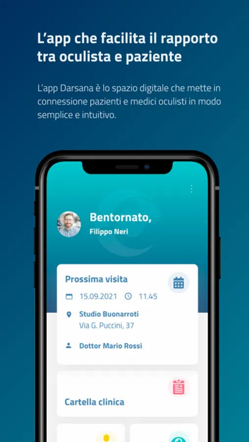 L’app Darsana è stata pensata, ideata e sviluppata con l’obiettivo di creare un canale prioritario di comunicazione mediante il quale rendere più agevole e fruibile l’attività diagnostica svolta dal medico oculista per il paziente.