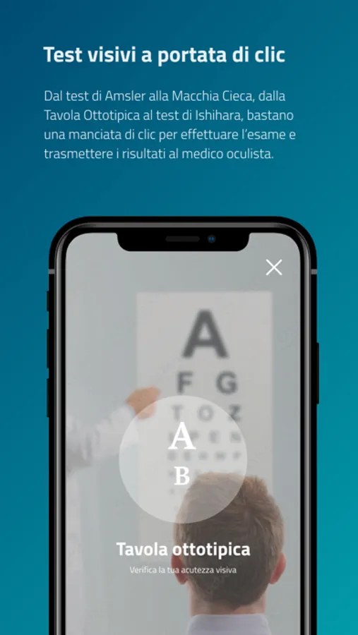• al paziente di caricare referti e sottoporsi a test di autovalutazione della vista, che verranno comunicati in tempo reale all’oculista;