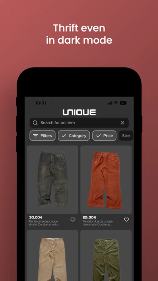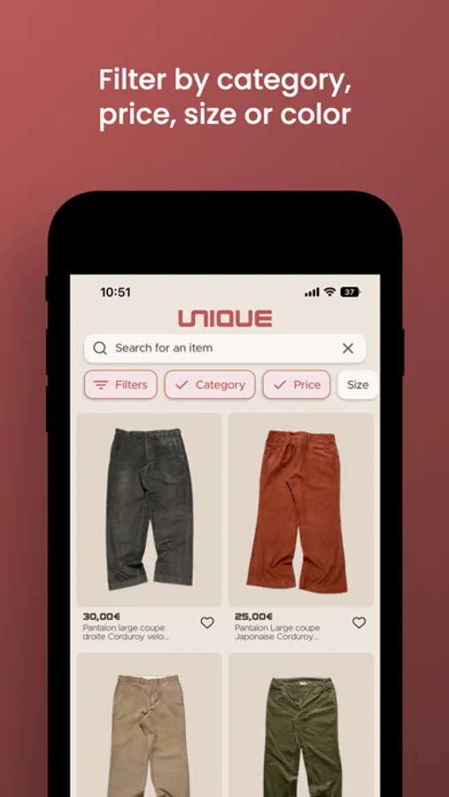 - Filter items by category, size, price or color