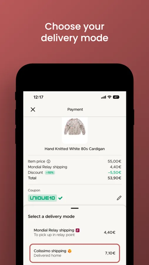 - Choose your delivery method: Mondial Relay, Colissimo or Click and Collect