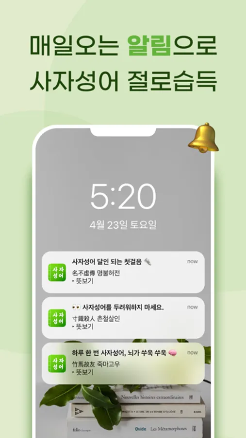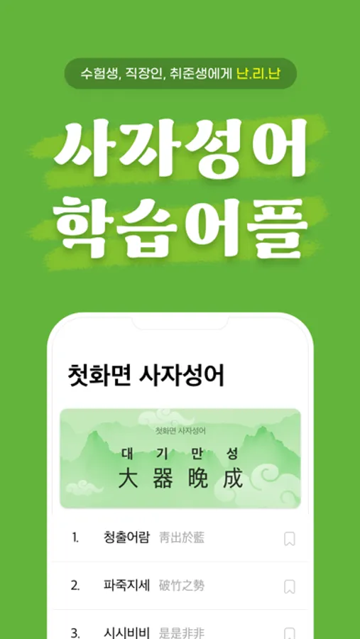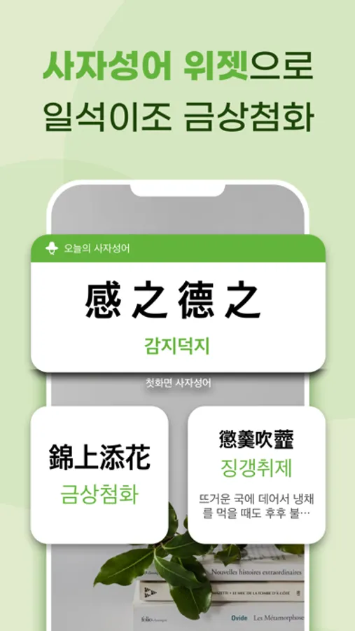 제시간에 날아오는 사자성어 알림으로 들숨에 한자를 날숨에 사자성어를 추가하세요