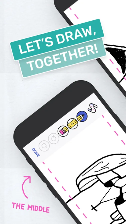 Skwiz is a play on the term exquisite corpse (“ik-Skwiz-it”). It’s the mobile drawing game where multiple people create one drawing without knowledge of what the others have contributed - until the end. It is the digital version of the surrealist drawing game “Exquisite Corpse,” in which players fold up a piece of paper, and pass it around so that each collaborator can only see the section they are drawing.