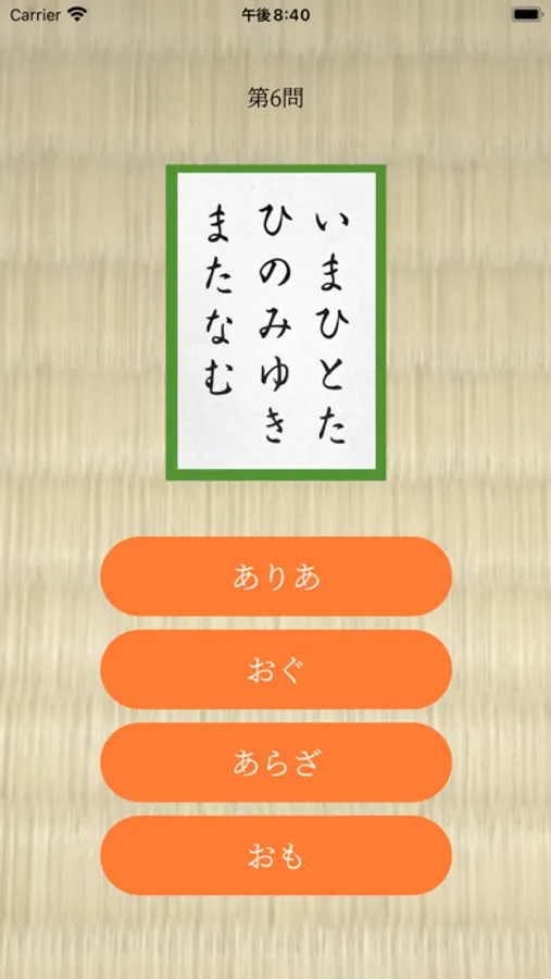 競技かるた初心者向け、百人一首を覚えるクイズアプリ。