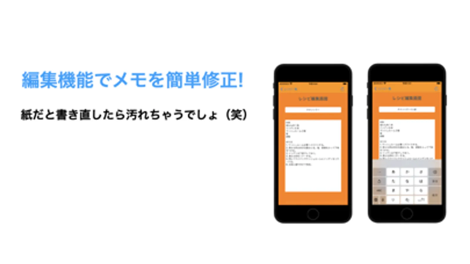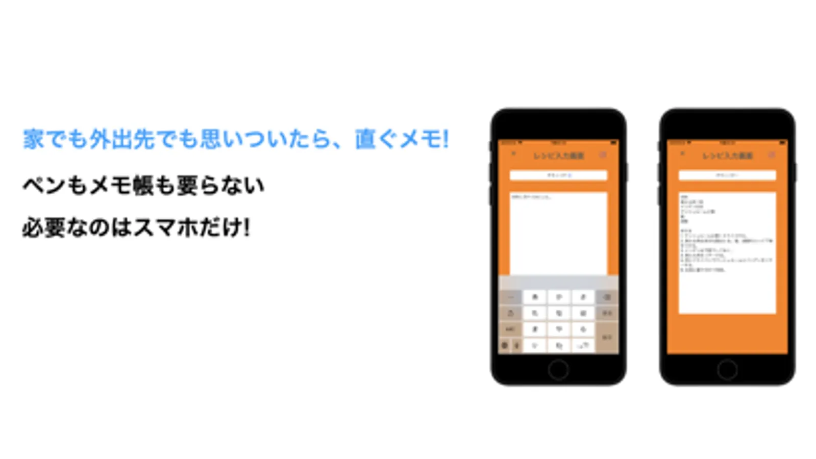 入力画面でレシピ名と材料、作り方をメモすることができます。
