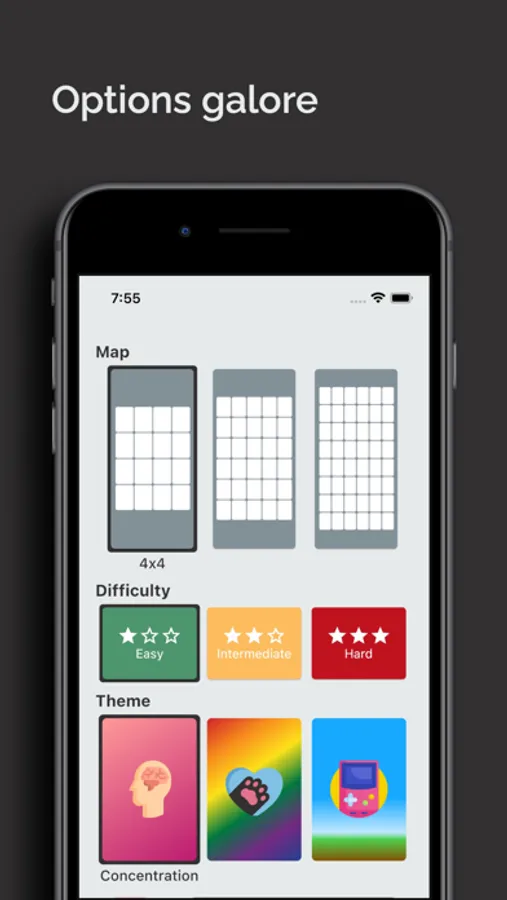 Concentration, also known as Matching Pairs, Match Match, Match Up, Memory, Pleonasm, Shank, Pexeso or simply Pairs, is a card game in which all of the cards are laid face down on a surface and two cards are flipped face up over each turn. The object of the game is to turn over pairs of matching cards.