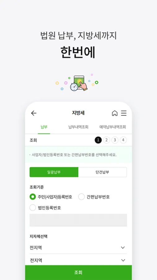⁻ 공과금 : 지로, 지방세, 국세/관세, 법원/범칙벌과금 납부 및 내역 조회 등