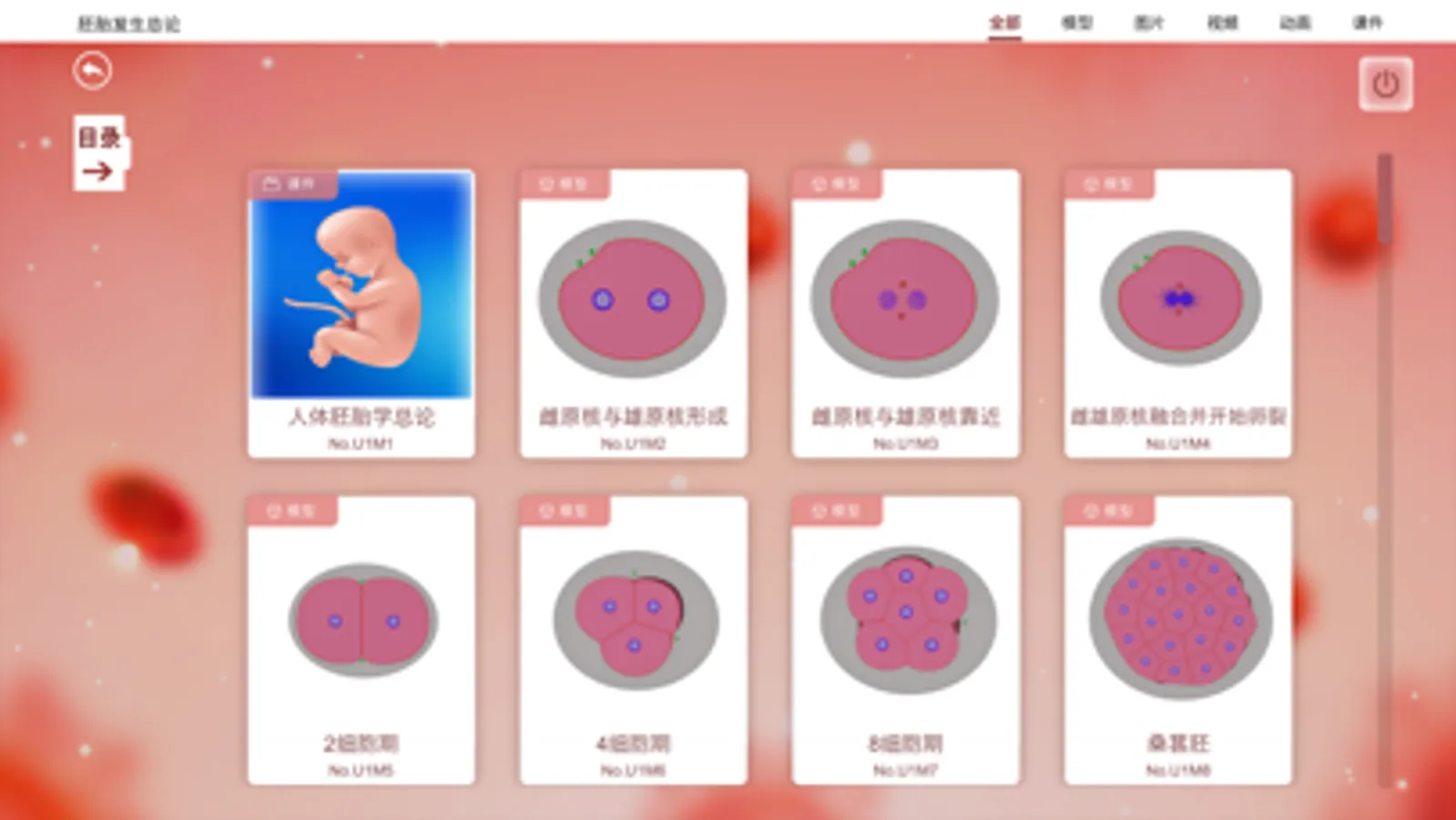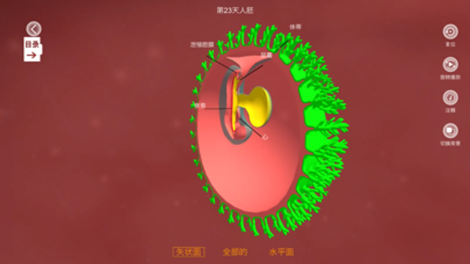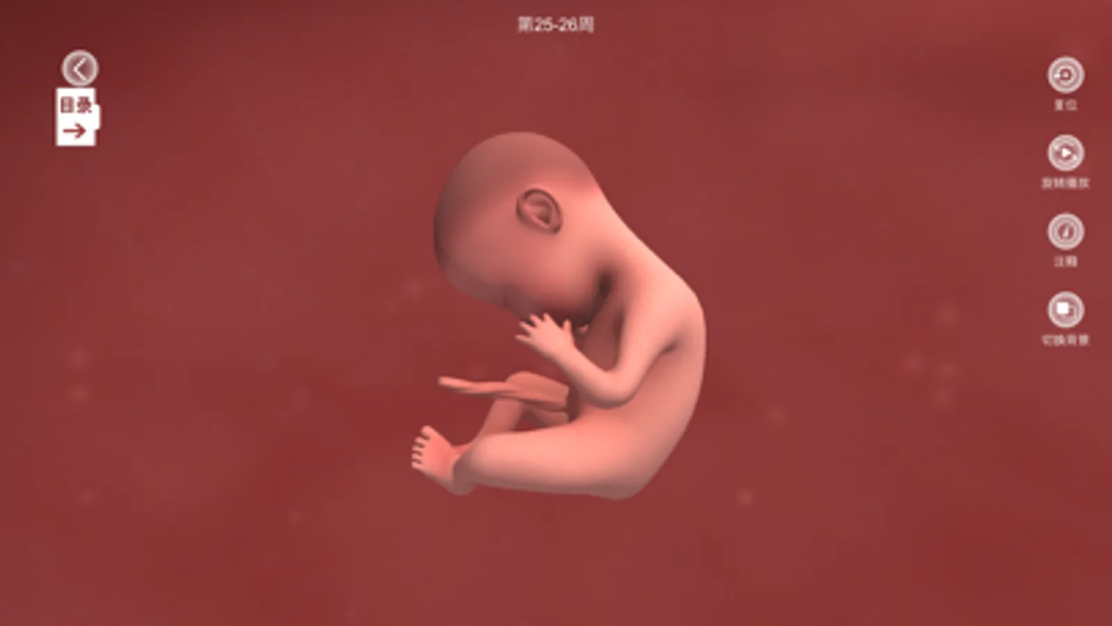 人类胚胎发育教学系统,包含胎儿从卵细胞发生到婴儿出生的全过程内容教学,以3d模型、图片、视频、动画、课件等多种形式展现教学内容,同时支持用户对模型的操作、知识点标注、语音介绍等特色功能。
