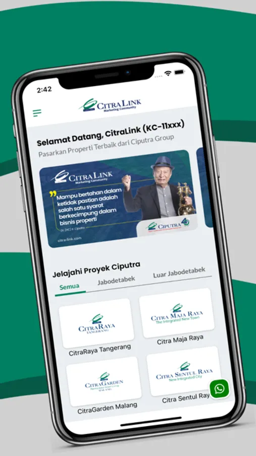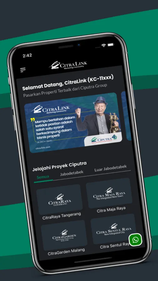 Aplikasi CitraLink adalah aplikasi yang memudahkan sales inhouse dan agent property mengakses informasi terkini tentang berbagai proyek Ciputra Group seperti product knowledge, e-brochure, simulasi pembayaran dan info penting lainnya.