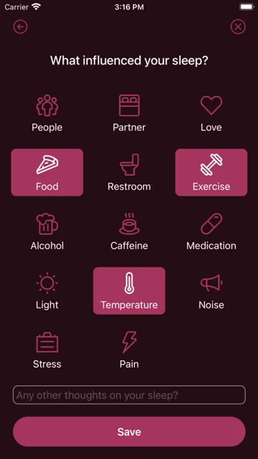 - Track events that affected your sleep to find connections and improve habits