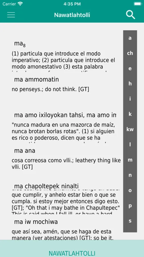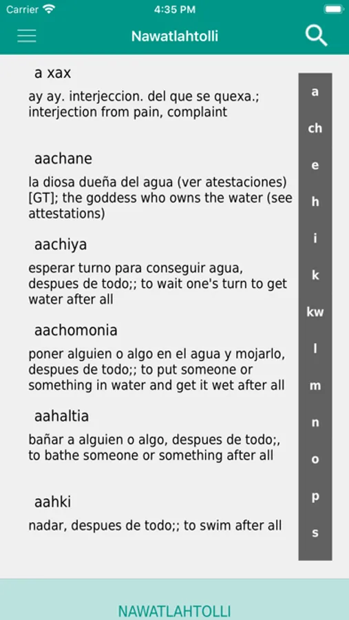Diccionario APP que contiene 40.000 palabras en Nawatl/Nahuatl.