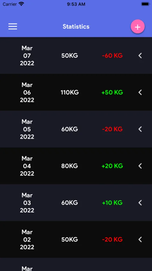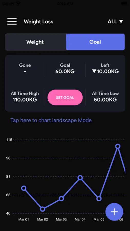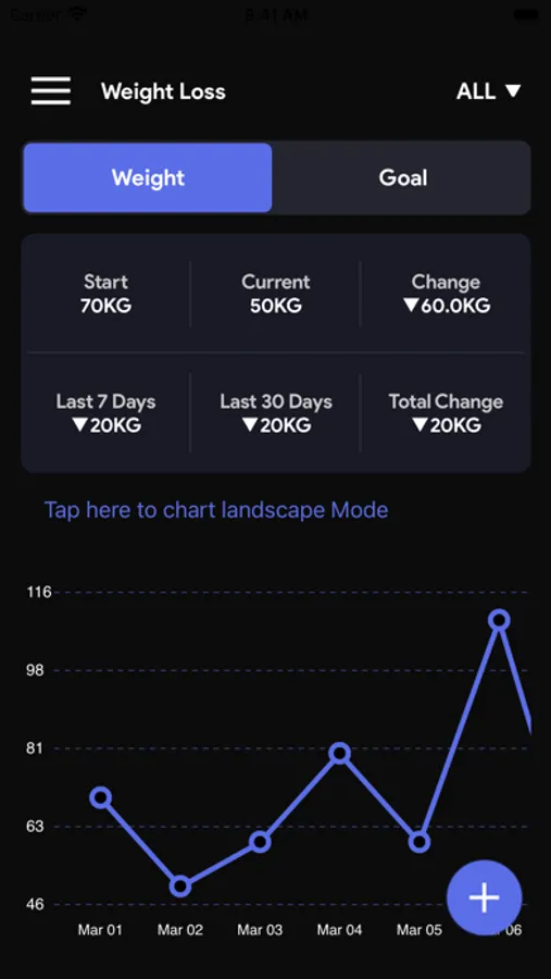 > You will have your weight history always at a glance with our beautiful chart. Easily visualise your body changes on the weight graph.