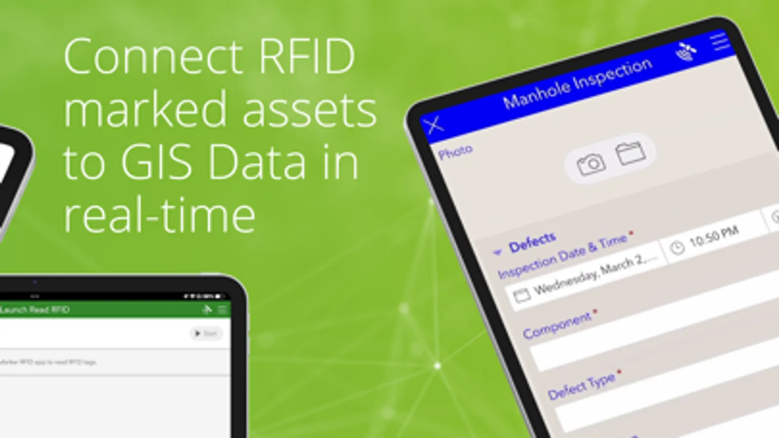 InfraMarker RFID app, compatible UHF RFID tags, readers, and host applications, such as ArcGIS Field Maps and ArcGIS Survey123 applications work together to transform the way infrastructure assets are managed. InfraMarker RFID improves asset identification accuracy, accelerates inspection and maintenance workflows, and enables a more reliable audit and compliance record.