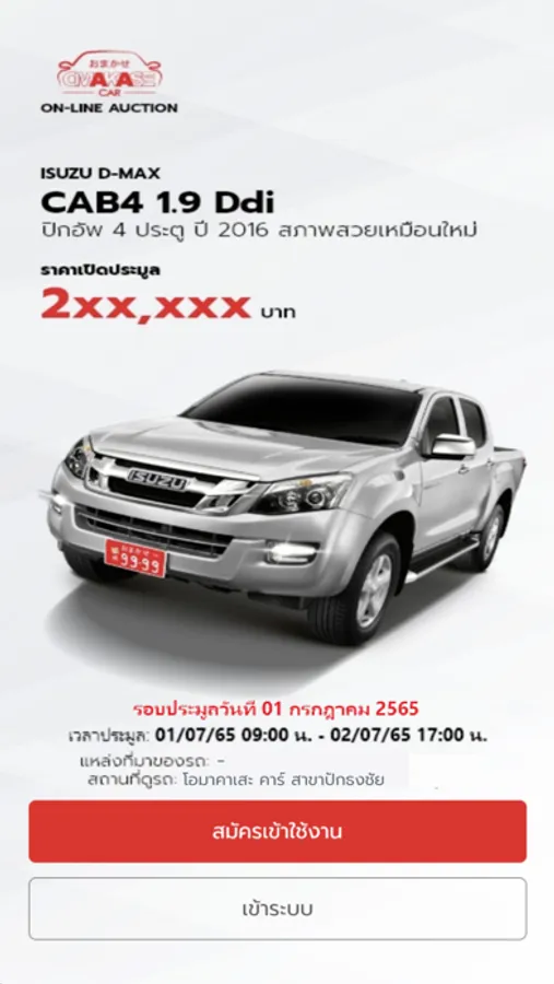 OMAKASE CAR ONLINE AUCTION เป็นแอพพลิเคชั่นสำหรับการประมูลที่บริษัท โอมาคาเสะ คาร์ จำกัด
