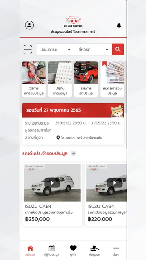สามารถดูรอบการประมูลจากปฏิทินการประมูลได้