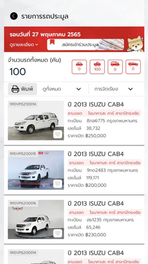 สามารถค้นหาและดูรายละเอียดข้อมูลรถที่อยู่ในการประมูลและ