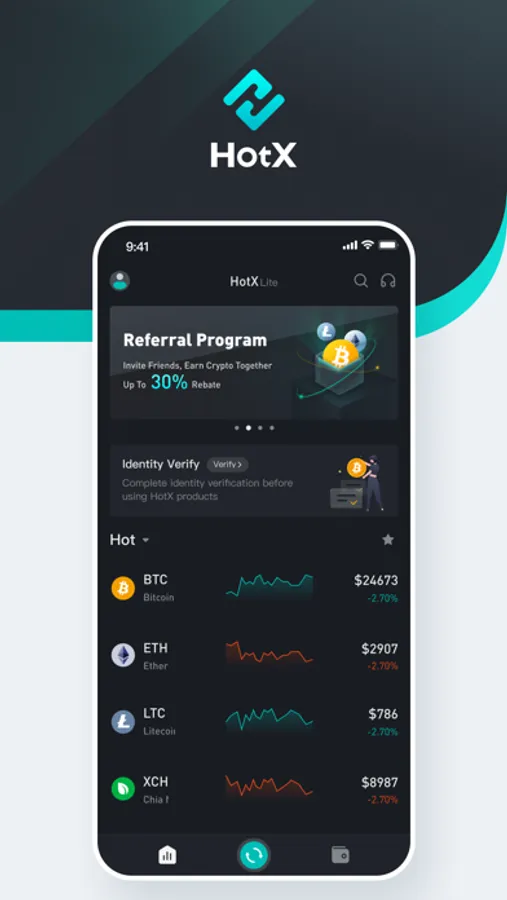 HotX(https://www.hotx.pro), the most popular and secure Bitcoin exchange, is the world's leading digital asset financial service provider for professional users. On the official HotX App, you can quickly buy and sell Bitcoins, and easily obtain profits from a single purchase. Trusted by millions of users worldwide, you can start here and buy Bitcoin (BTC), Ethereum (ETH), Litecoin (LTC). We offer the lowest fees in crypto [Why choose HotX] Stability: the world's top technical team, multiple security assurance Profession: Holding finance license, partner of world famous investment bank and stock exchange [Product features]