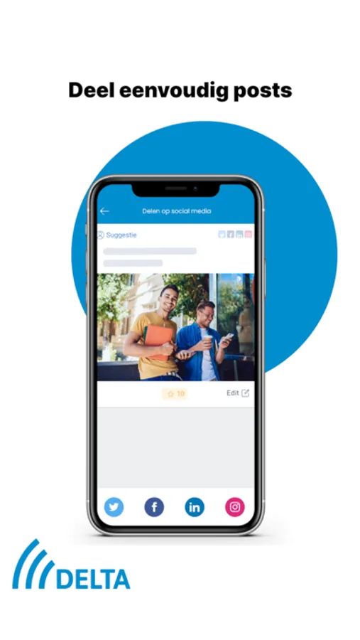 Samen met jouw collega’s en relaties ontvang je kant-en-klare social media berichten vanuit jouw organisatie, die je met één klik deelt op jouw persoonlijke en zakelijke social media accounts. Help bovendien jouw social media manager door zelf interessante content te uploaden. Zo bouw je samen aan het imago van jouw organisatie of merk.