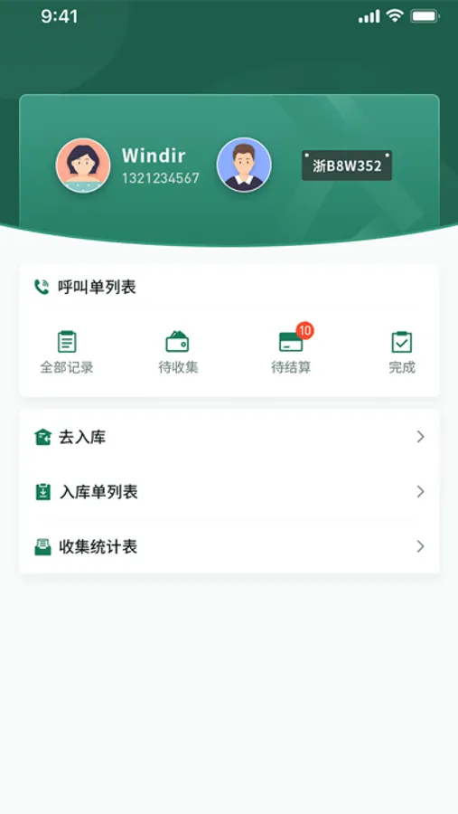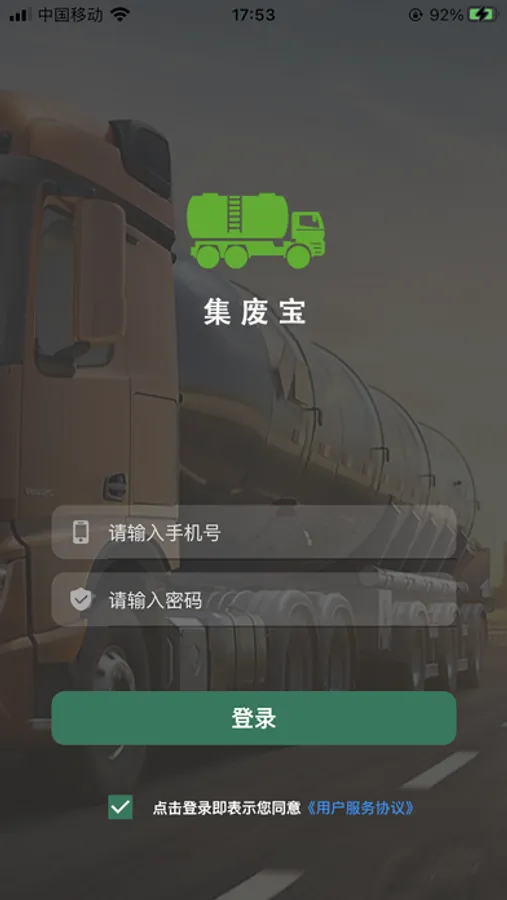 危废收运系统司机端,包含危废收集,危废入库,确认呼叫单后对产废单位的危废装车处理。