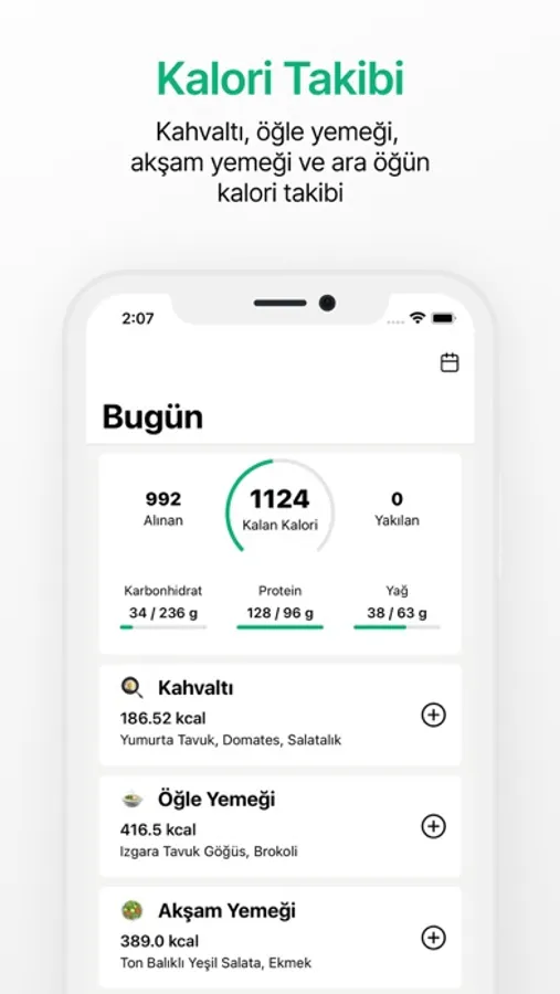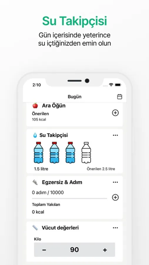 Gün içinde ihtiyacınız olan kalori miktarını belirleyin. Akıllı hatırlatıcılar aracılığıyla öğün bilgilerinizi girerek, geniş veri tabanı sayesinde düzenli kalori takibi yapın.