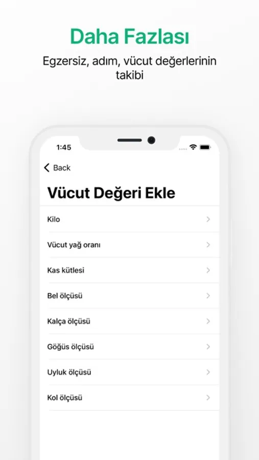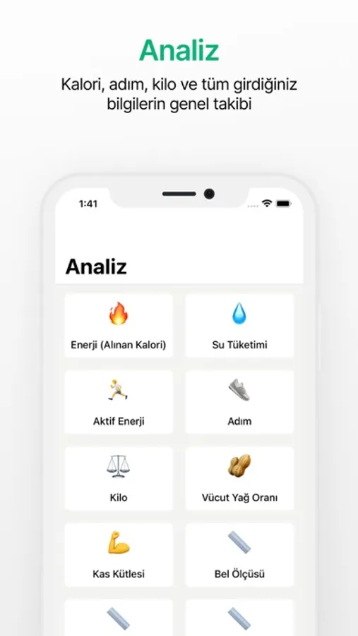 Kişisel ölçüm bilgilerinizi uygulamadaki ilgili bölümlere girerek hedeflerinize ulaşma sürecinizde ayrıntılı analizlere ulaşın.