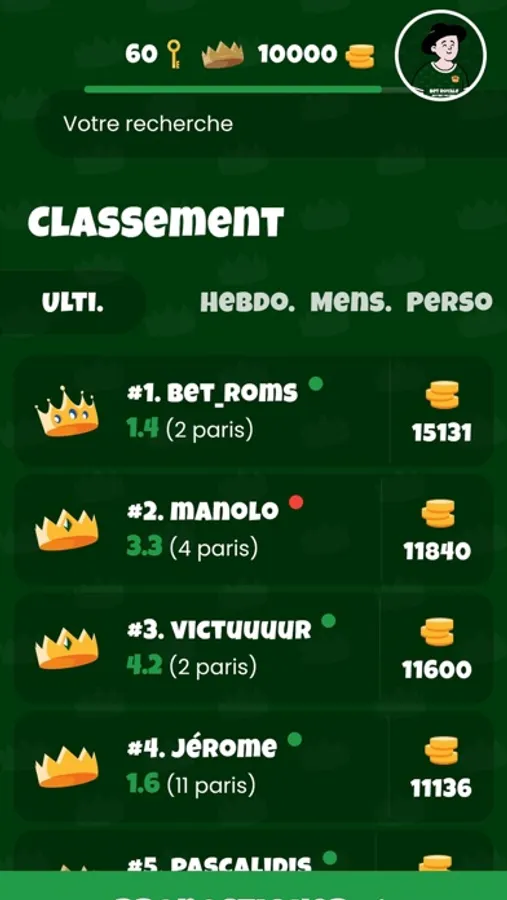 Deviens le numéro 1 du paris sportifs parmi les classements hebdomadaire, mensuel et ultime et gagne de nombreux trophées.
